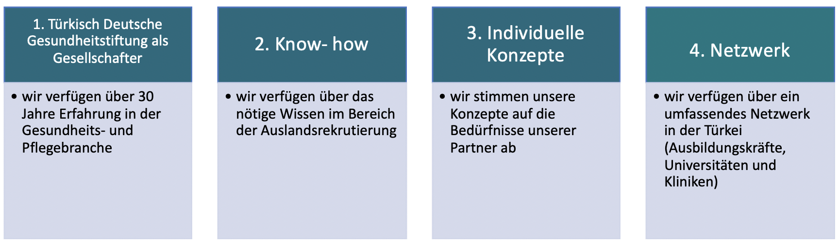 Der Mangel an Pflegekräften in Deutschland ist eines der besorgniserregendsten Probleme. Um dem entgegenzuwirken haben wir es uns zur Aufgabe gemacht, Pflegekräfte aus dem Ausland anzuwerben und zu vermitteln. Wir gehen lösungsorientiert vor und gewährleisten einen reibungslosen Ablauf. Unser Ziel ist es, zuverlässige und motivierte Pflegekräfte, insbesondere aus der Türkei, zu finden und für uns in Deutschland zu gewinnen. Gerne beraten wir Sie persönlich und individuell für weitere Informationen.
